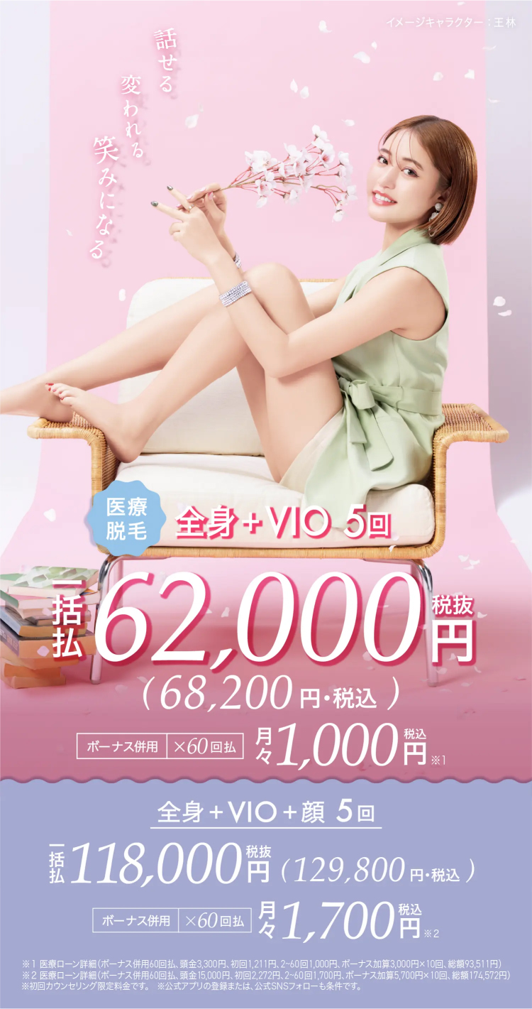 | 顔なし・VIOなし | 68,200円 ※初回カウンセリング限定料金 |